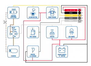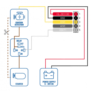 La conexión de DIN1 es opcional, el sistema detecta el arranque por su sensor acelerómetro.Con este montaje se pueden activar los siguientes escenarios de inmovilización(*):